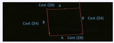 Next we multiply this length (7) by the width (4), obtaining the area: 28