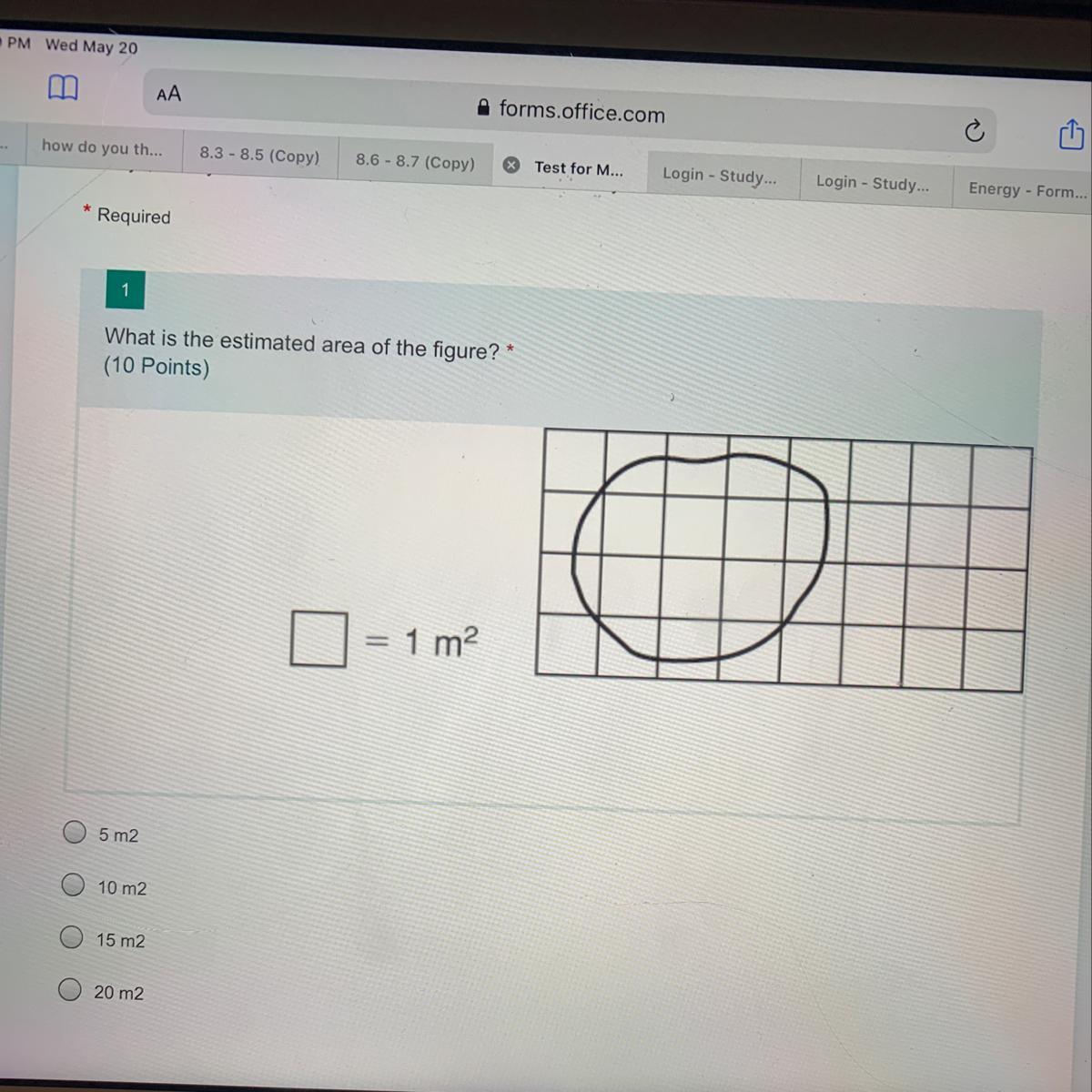 What is the estimated area of the figure? 5 m2 10 m2 15 m2 20 m2