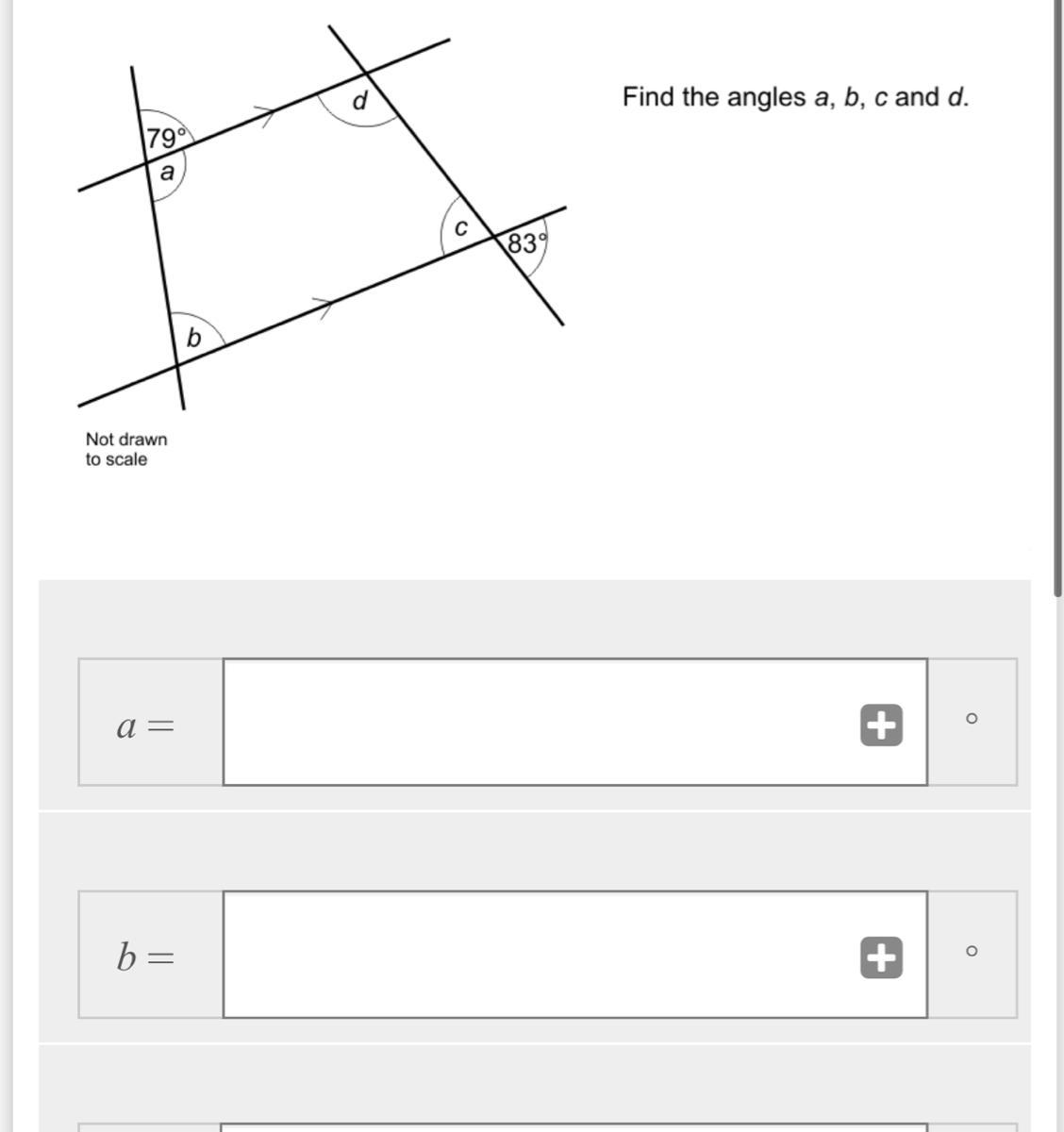 (a, b, c, d) = (101°, 79°, 83°, 97°)