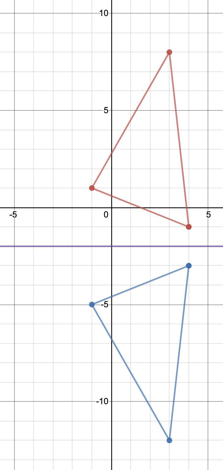 The red triangle is the original image and the blue triangle is the image after the reflection. The purple line is the reflection line y = -2