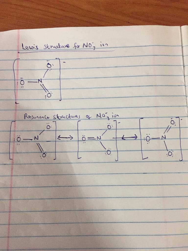 Attached below is the Lewis structure and resonance structures of the ion ( NO^- 3 )