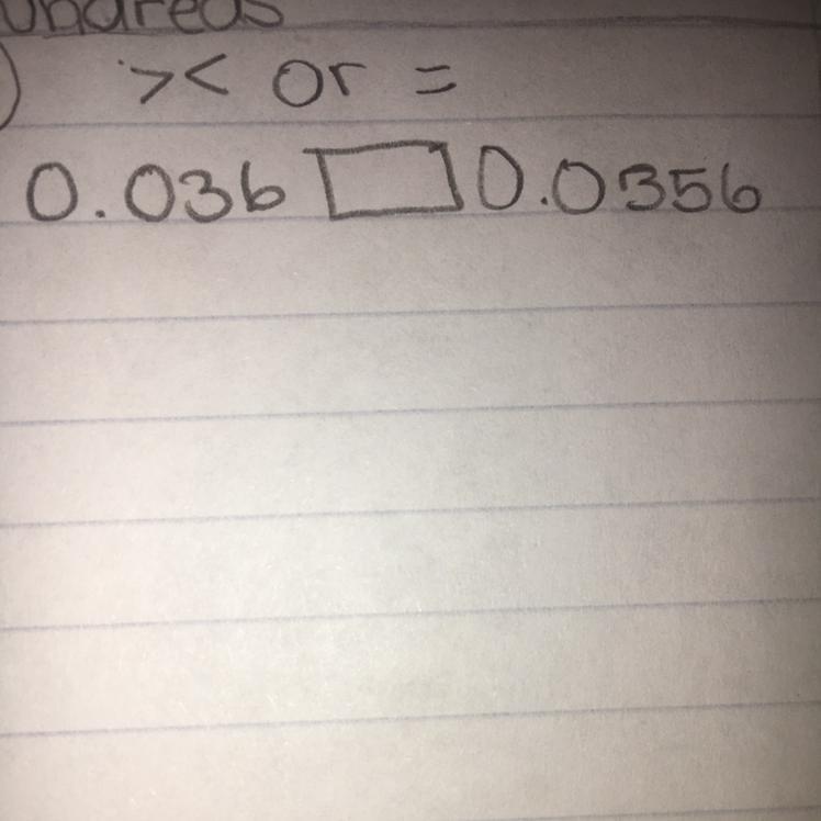 The thousandths place 6 > 5 so .036 > .0356