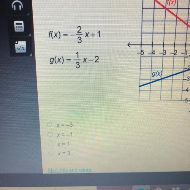 (D) The line crosses the x-axis at –3