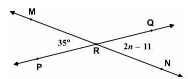 The two angles, PRM and QRN, are vertically opposite, which means that they must be the same size. This means we can form an equation to solve for n: