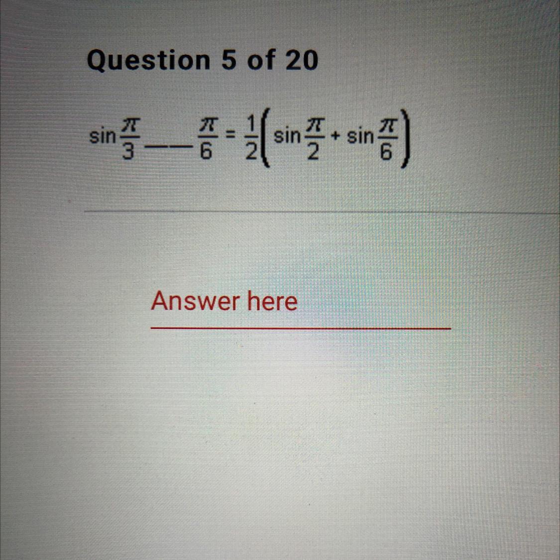 sin(<em>π</em>/3) cos(<em>π</em>/6) = 1/2 (sin(<em>π</em>/2) + sin(<em>π</em>/6))
