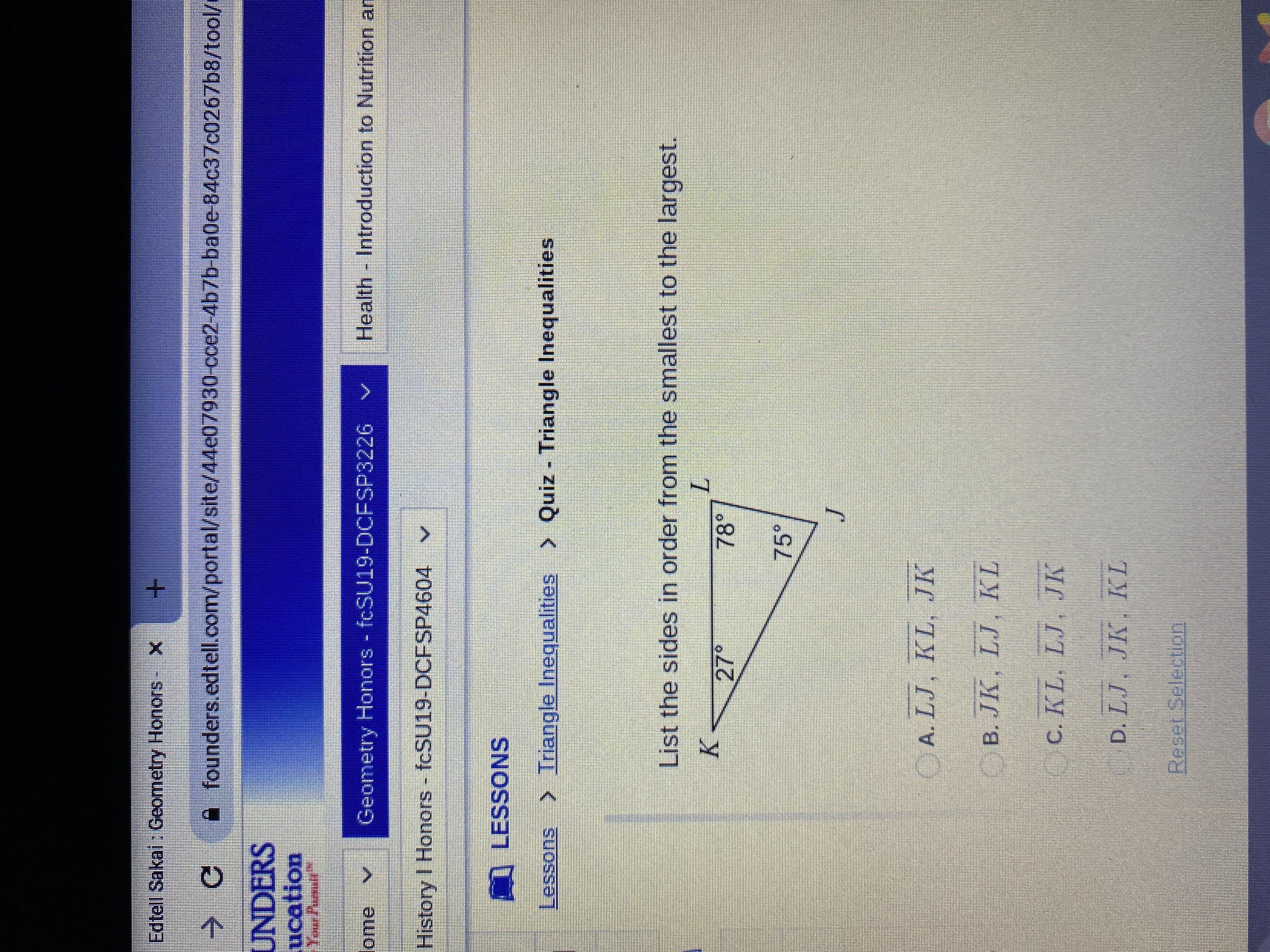 You can tell which lines are smaller by using the angle measurements. The direction from which the angle is shown points to their respected line.