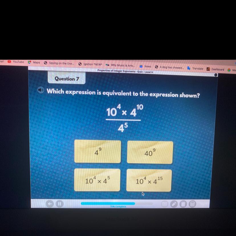 40^14 over 4^5 then divide 40 by 4 and 14-5 which would be 10^9