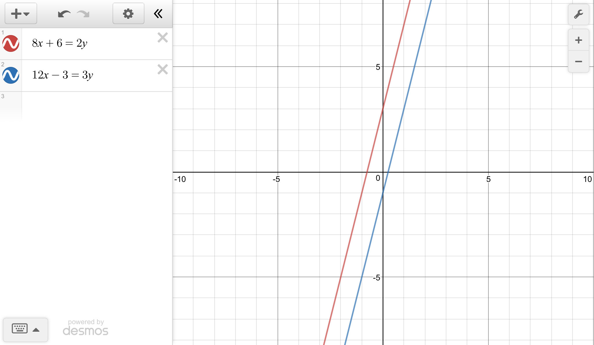 These equations differ only in their y-intercept, so describe parallel lines. The appropriate choice is ...
