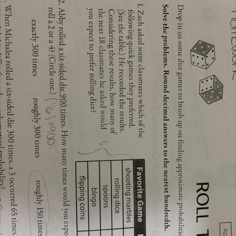 1. Zach asked some classmates which of the