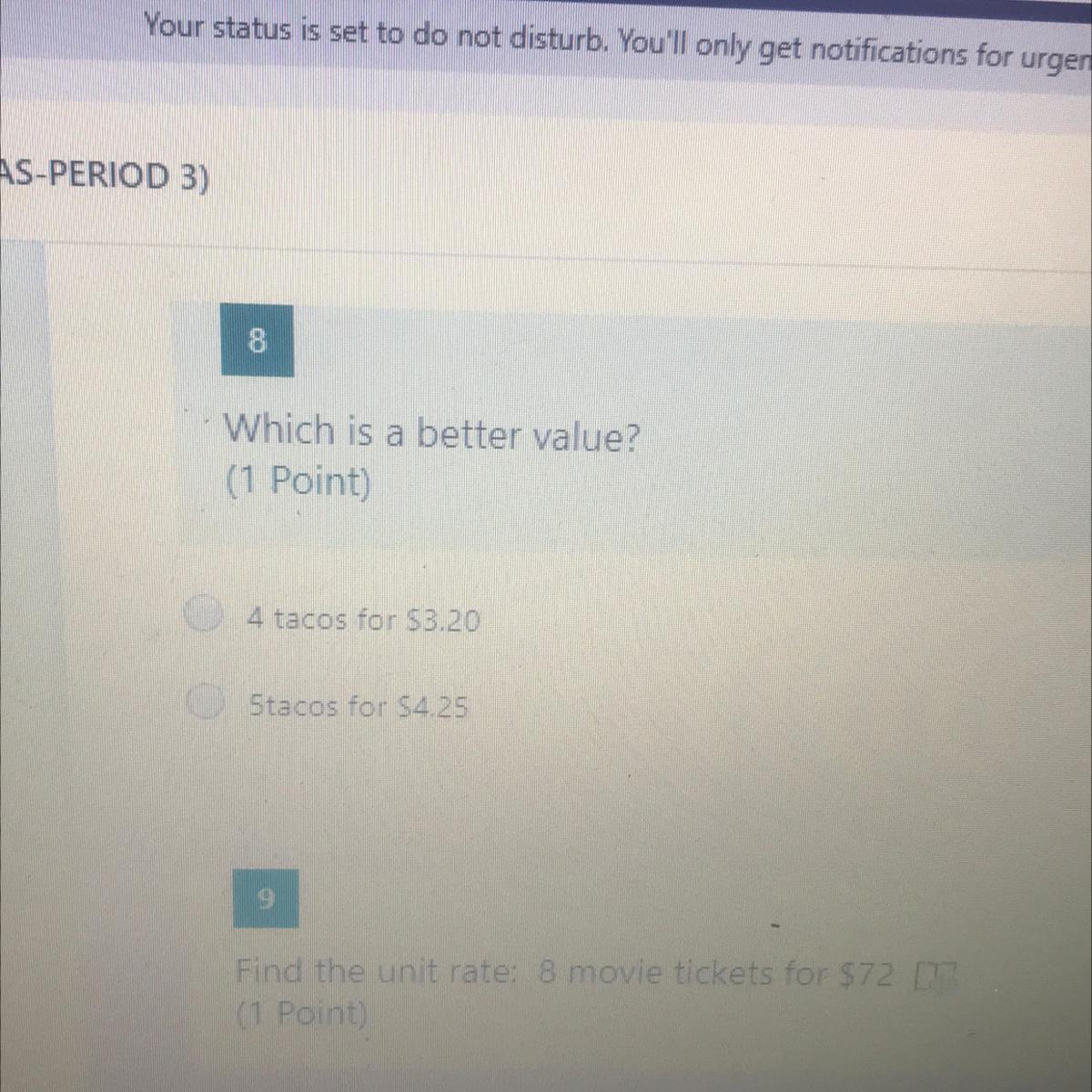 Answer: 4 tacos for 3.20