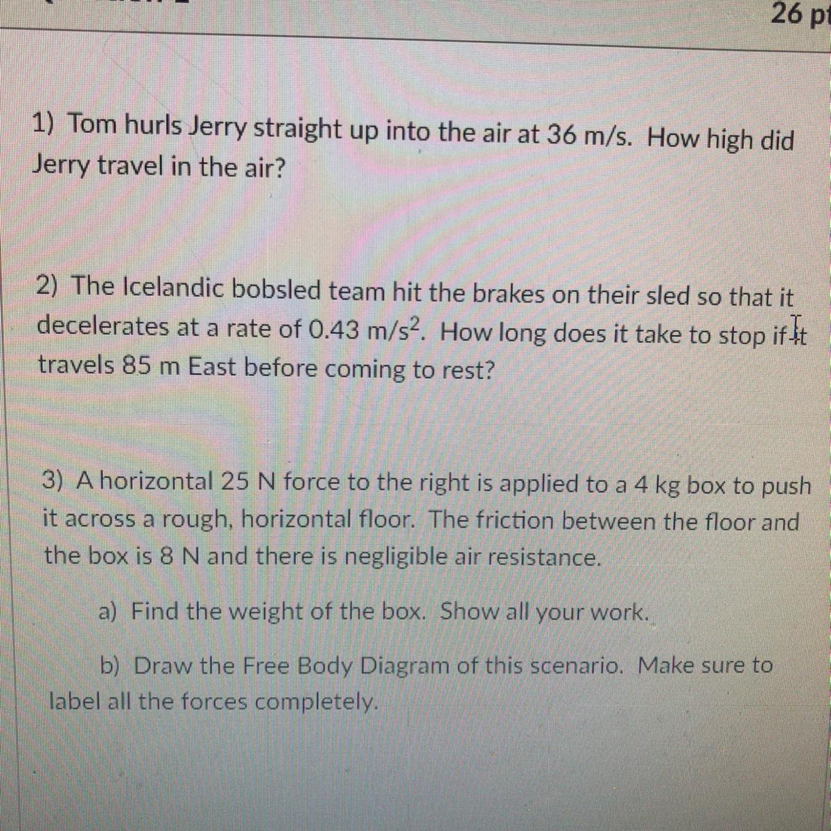 I need help on these 3 questions. I need the original formula used and the givens