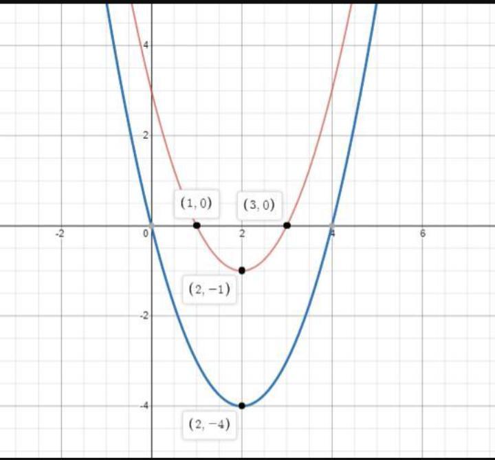 Which statements about functions g(x) = x² - 4x + 3 and f(x) = x² - 4x are true? Select all that apply.