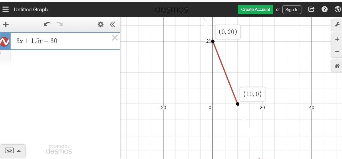 The y-intercept is the point (0,20)