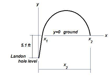 When x = 0, y = -5.1 ft, which is the location of the hole level.