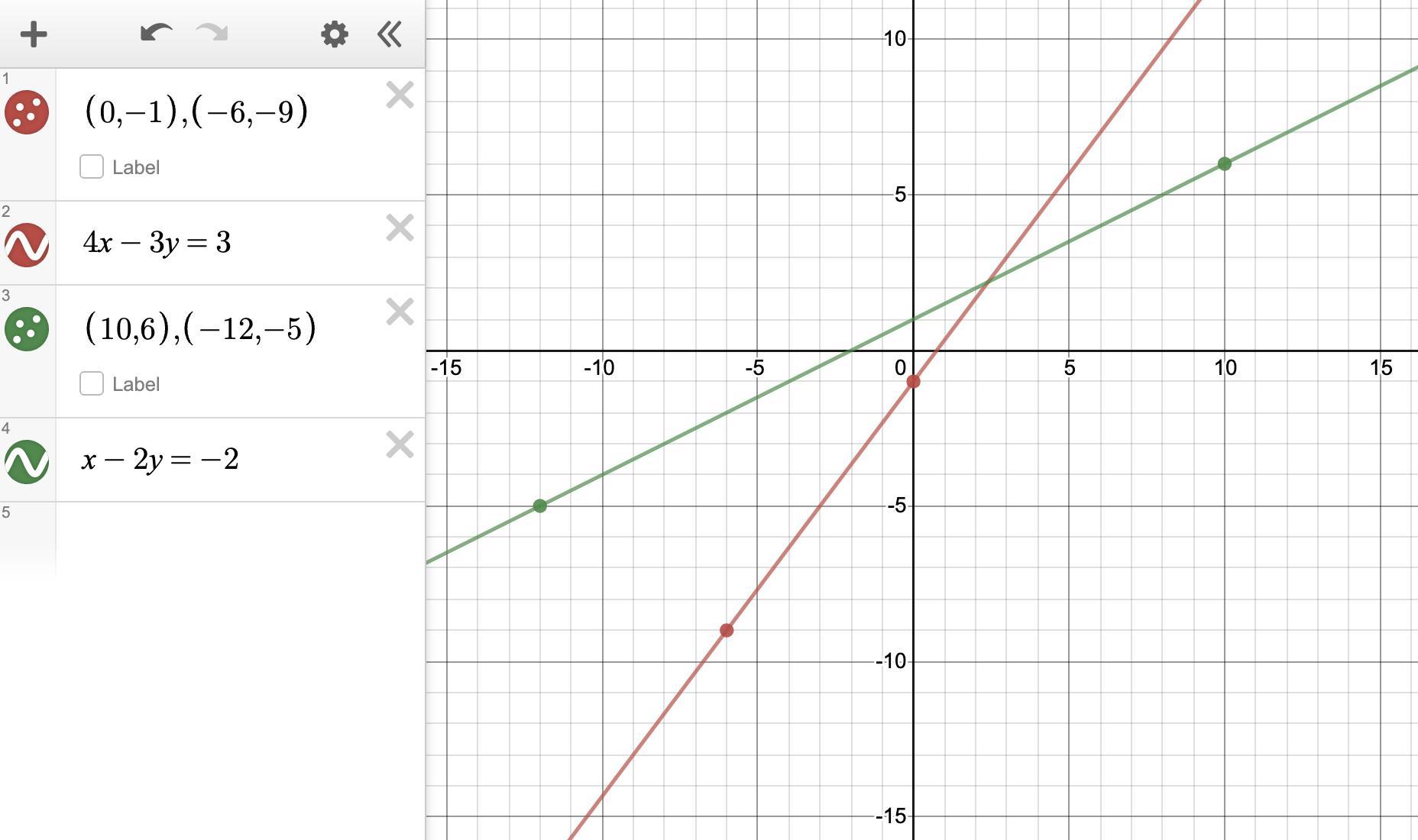 5] A horizontal line has the equation y = constant. A vertical line has the equation x = constant. To make these lines go through the given point, the constants need to be equal to the corresponding coordinates: