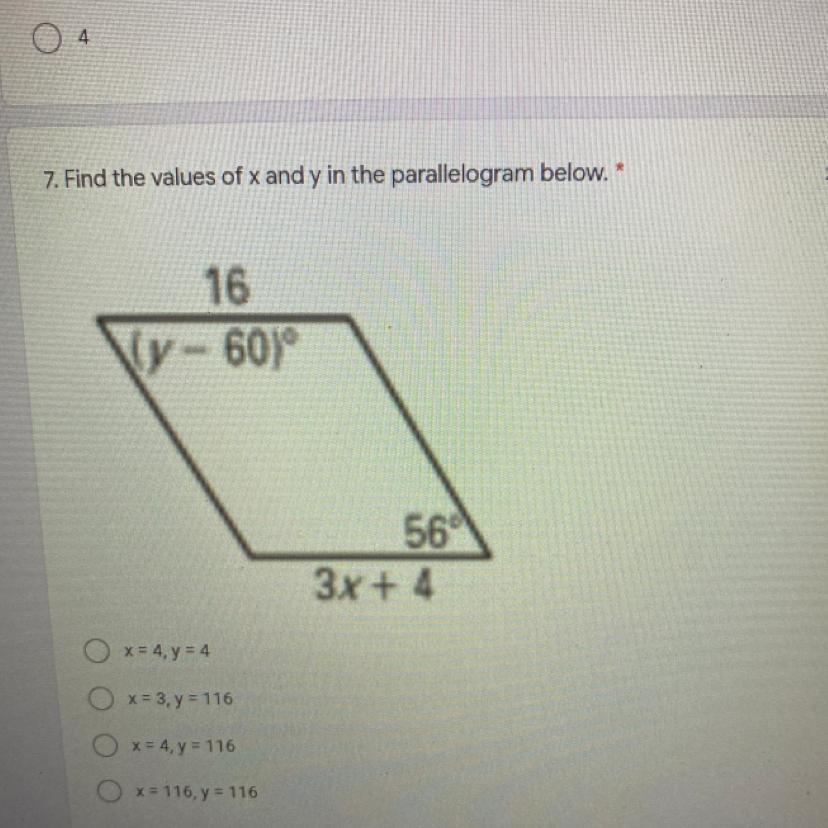=> 16 = 3x + 4