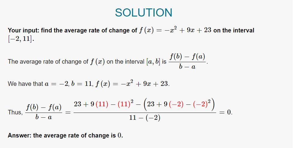 You don't really have to do any math for this problem. The vertex lies at the center of [-2,11] so it means that the slope going across the interval line (x=1) is 0. (i used desmos to graph it)