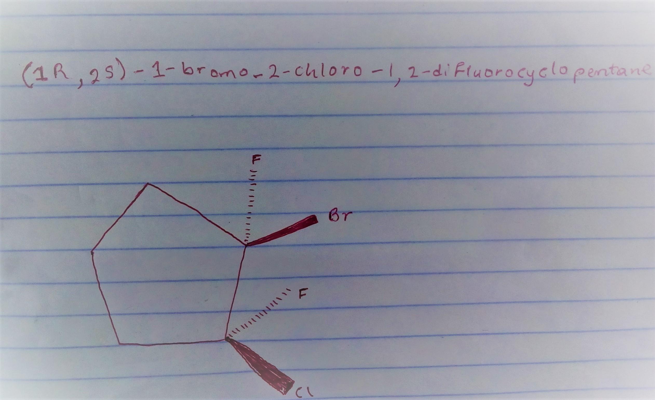 The objective here is mainly drawing the diagrams of every stereoisomer for 1-bromo-2-chloro-1,2-difluorocyclopentane.