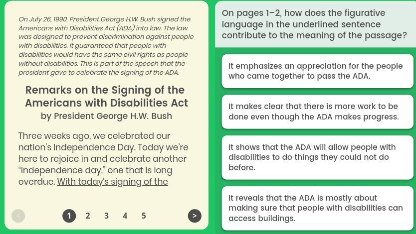 The underlined text is stating how with the new act people with disabilities will be able to pass through into a new bright era with equality and freedom