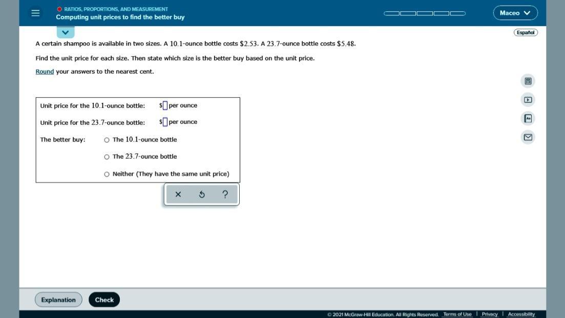 I think you divide. So 2.53 divided by 5.48 or the other way around or something. I don't know for sure. Sorry. I think the 23.7 ounce is better though.