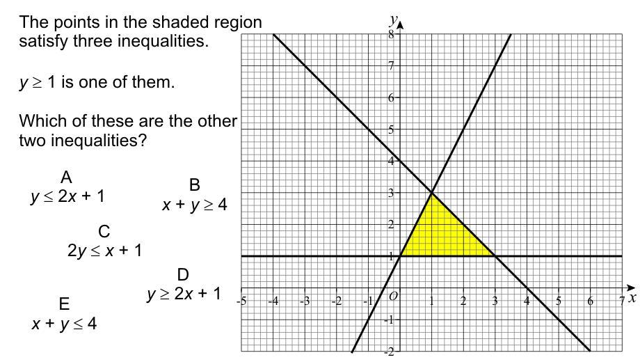 Answer: Y is less than or equal to 65 and X + y= less than or equal to 95