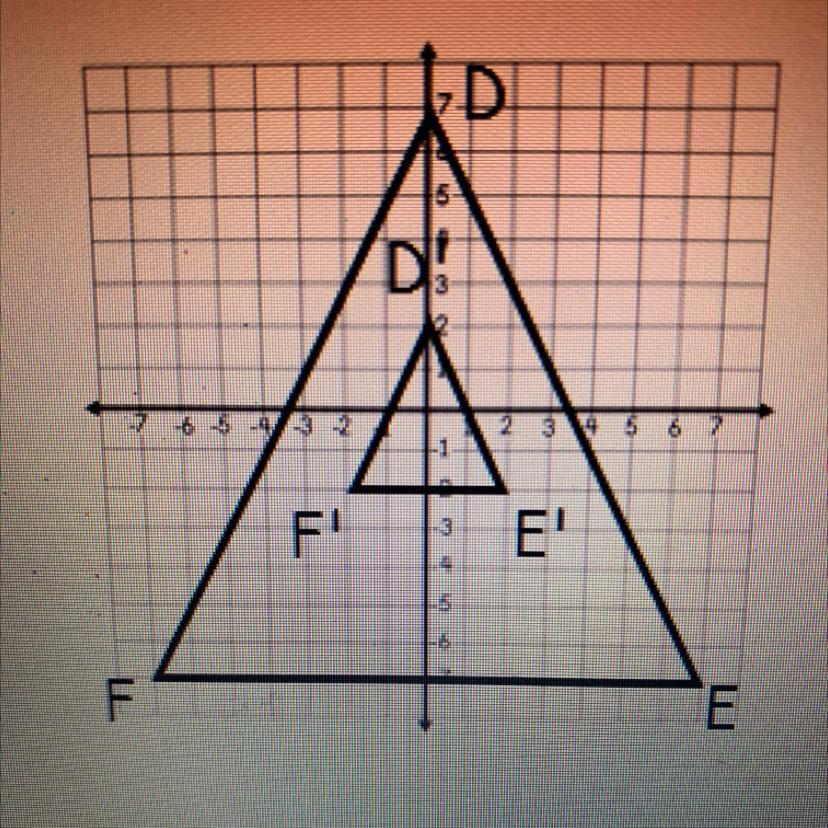 The diagram of triangle DEF and triangle D'E'F' on a coordinate plan.