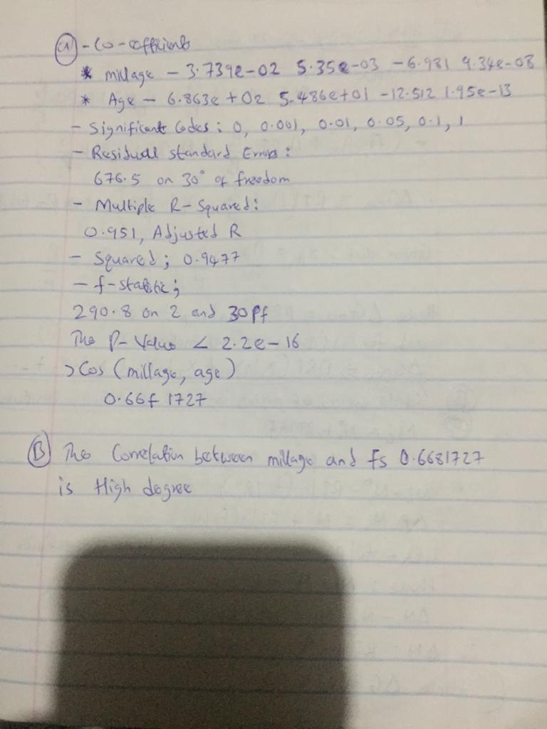 estimated regression equation = price ~ mileage + age = ( 2.039e + 04 - 3.79e - 02 millage , - 6.863e + 02 age )