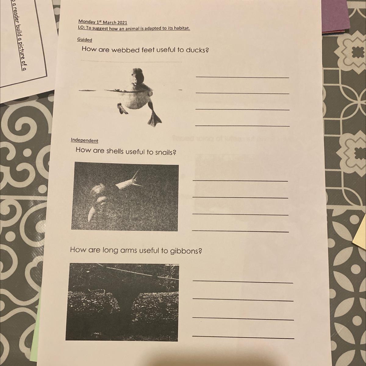 3) Long arms are useful to gibbons because It allows them to reach average speeds of about 35 miles per hour and propel themselves from one tree to another over distances of up to 50 feet.