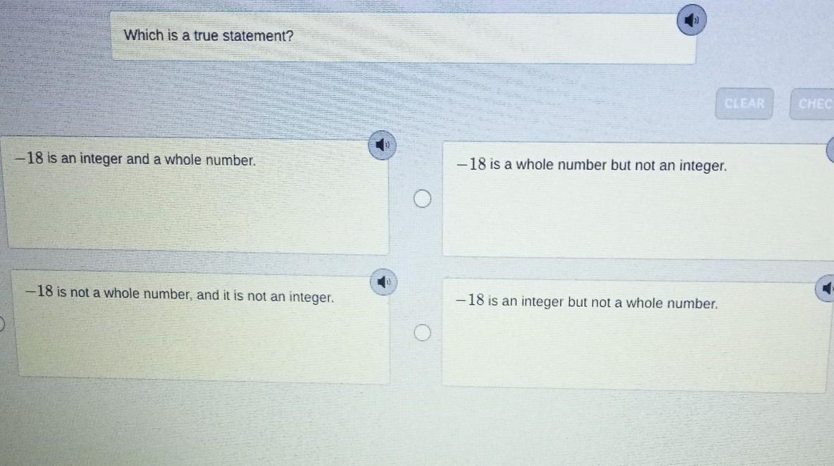 a whole number is only positive numbers and 0 itself while an integer is basically any number that isn't a decimal or a fraction. -18 is an integer, but it can't be a whole number because it is a negative number.