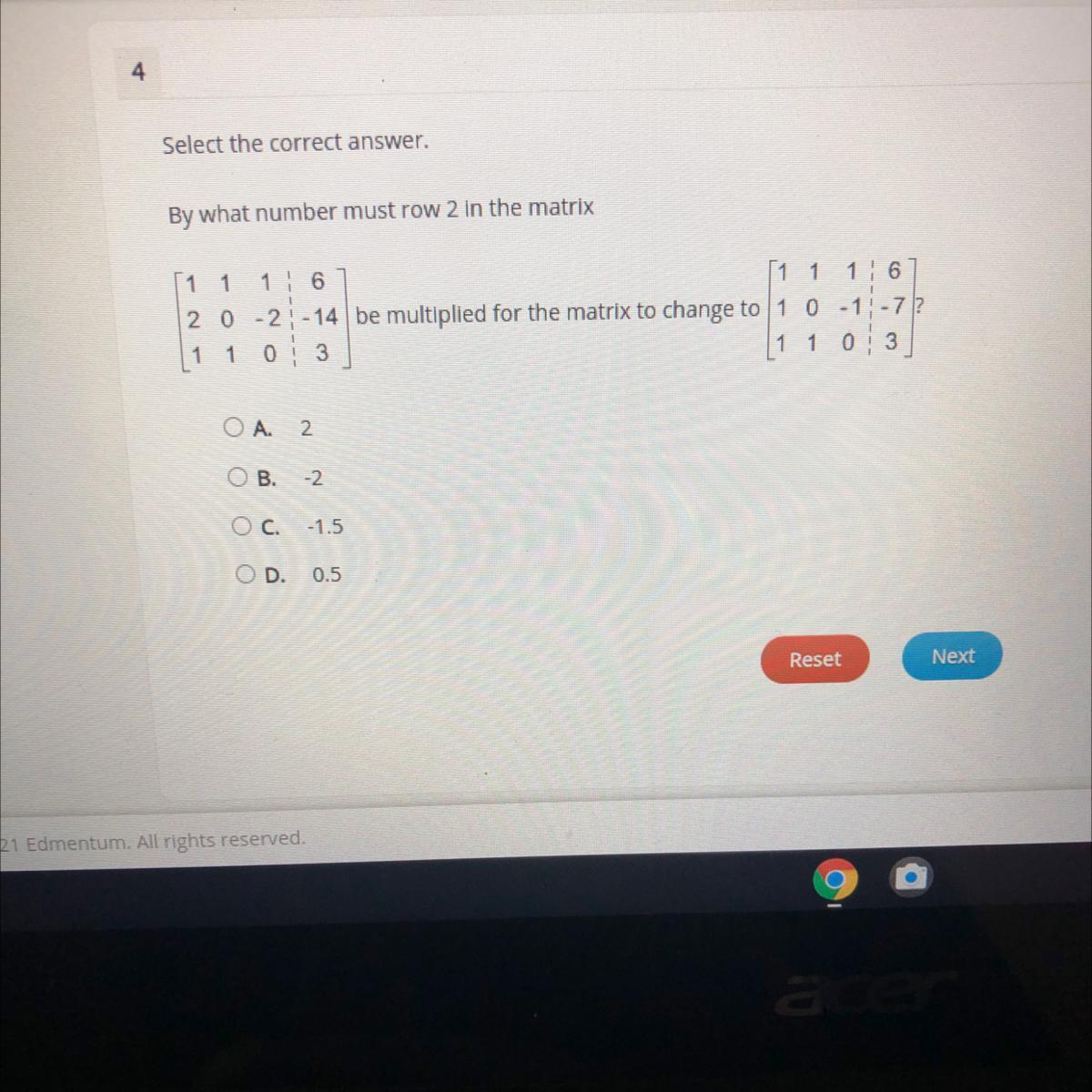 The answer is B because -84 divided by -28 equals 3 and -6 divided by -2 equals 3