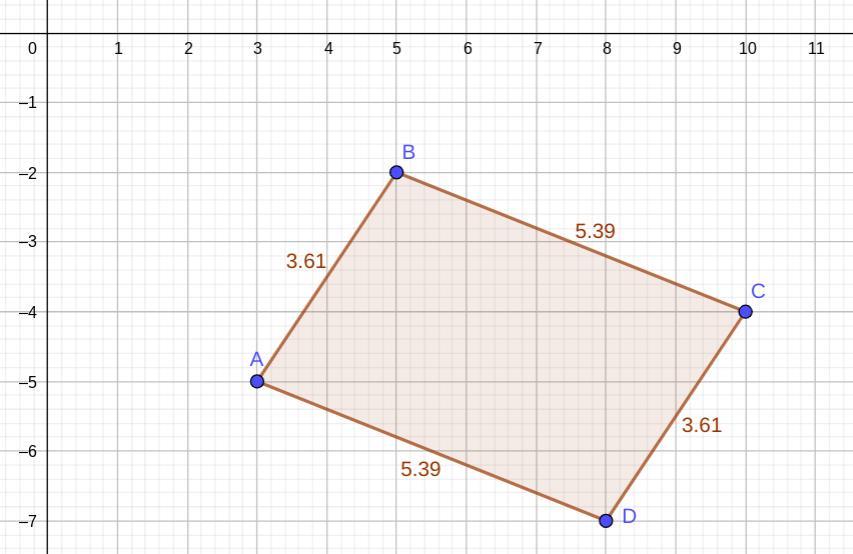 BD = D - B = (8, -7) -(5, -2) = (8 -5, -7-(-2)) = (3, -5)