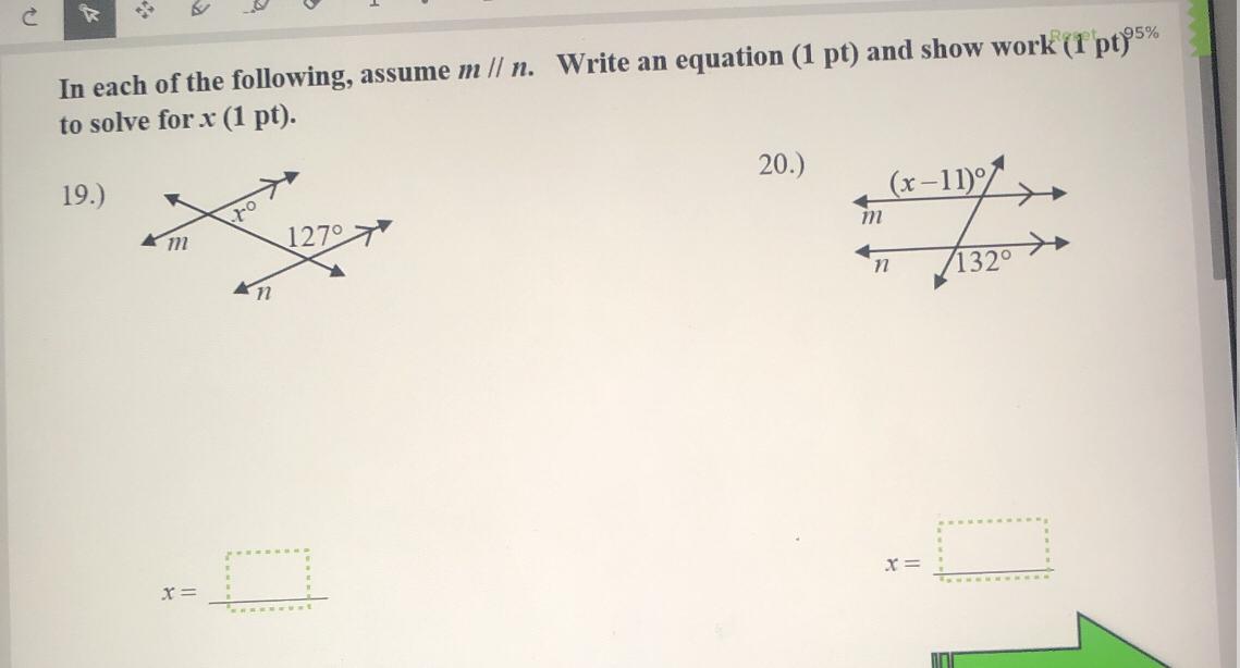 Step-by-step explanation: it’s a co interior angle so they should add up to 180 so u do 180-127=53