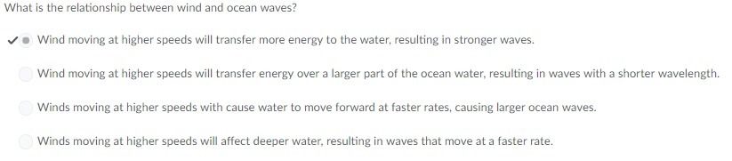 The Correct Answer Is D: Wind moving at higher speeds will transfer more energy to the water, resulting in stronger waves.