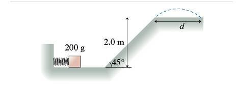 And now this becomes a projectile problem. The block travels a horizontal distance <em>x</em> after being launched at an angle of 45° with initial speed 12.4 m/s after time <em>t</em> according to