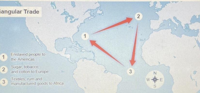 Industrial goods produced in Europe would be brought to Africa where they would be exchanged with local slave traders for enslaved people.