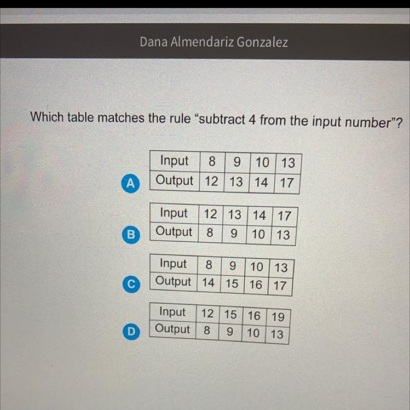 You just subtract it by 4. 12-4=8 etc.