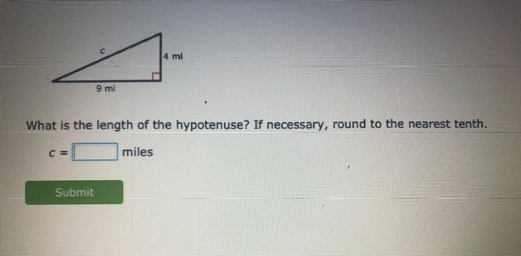 <u>h</u><u>^</u><u>2</u><u> </u><u>=</u><u> </u><u> </u><u>9</u><u>^</u><u>2</u><u> </u><u>+</u><u> </u><u>4</u><u>^</u><u> </u><u>2</u>