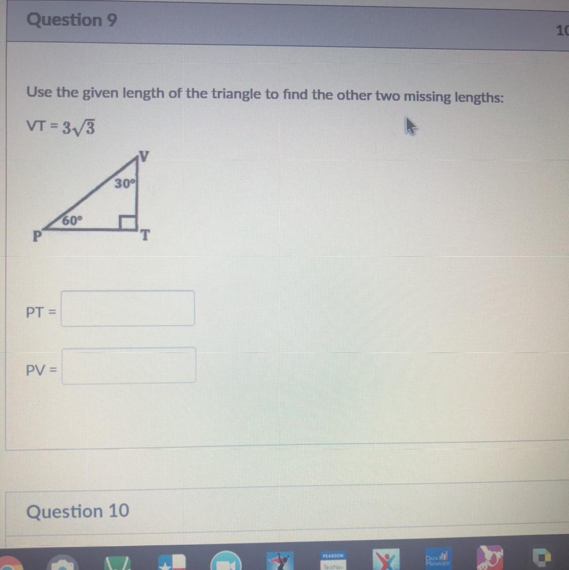 We have 9 cm on the shorter side and x as the hypotenuse.