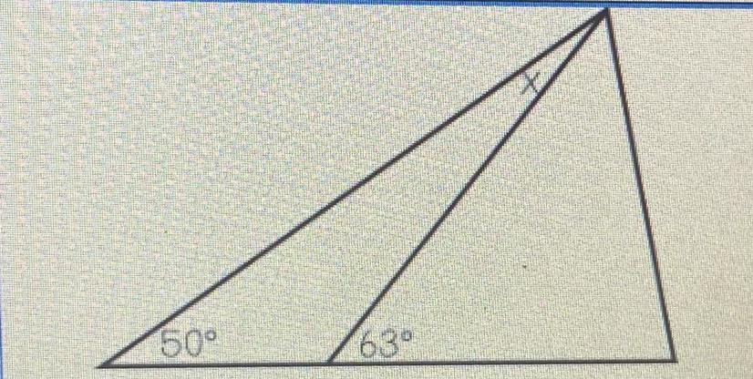 We know the interior angles in a triangle make 180. We know two angles 50 and 117 and 50+117=167. 180-167=13.