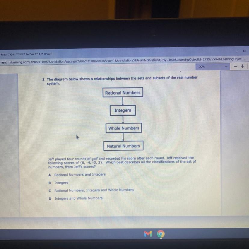 They are all integers so they are rational numbers, they are whole numbers as well except there are negative numbers so they are not all natural.