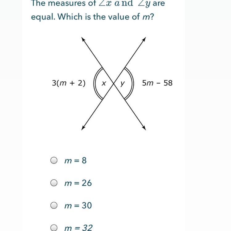 Answer: x=32 (upper answer is wrong!) Explanation: You set the equations equal to each other, then get the variables onto one side, then solve! I checked with a calculator, so this is correct :)