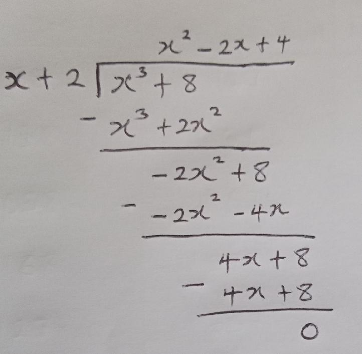 x³ + 8 = (x+2)(x² -2x + 4) + 0