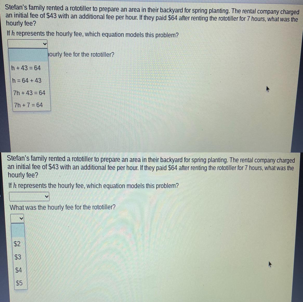 For the 2nd drop box, we will use basic algebra to solve for h: