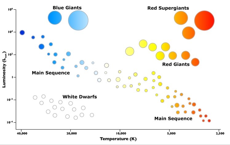 D. White dwarfs are the stars in the lower left region of the H-R diagram