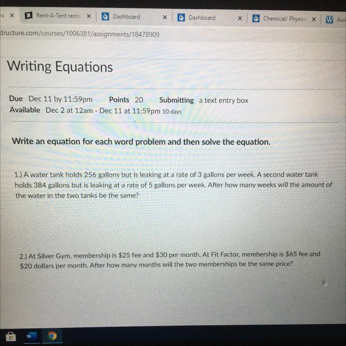 2. Let s and f represent the total cost of membership at Silver Gym and Fit Factor, respectively. Let x represent the number of months of membership.
