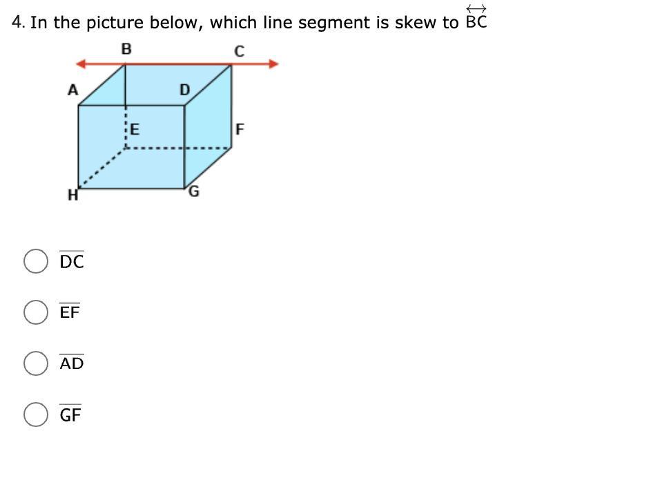 I think it is GF because it is not parallel or intersecting with Line BC.