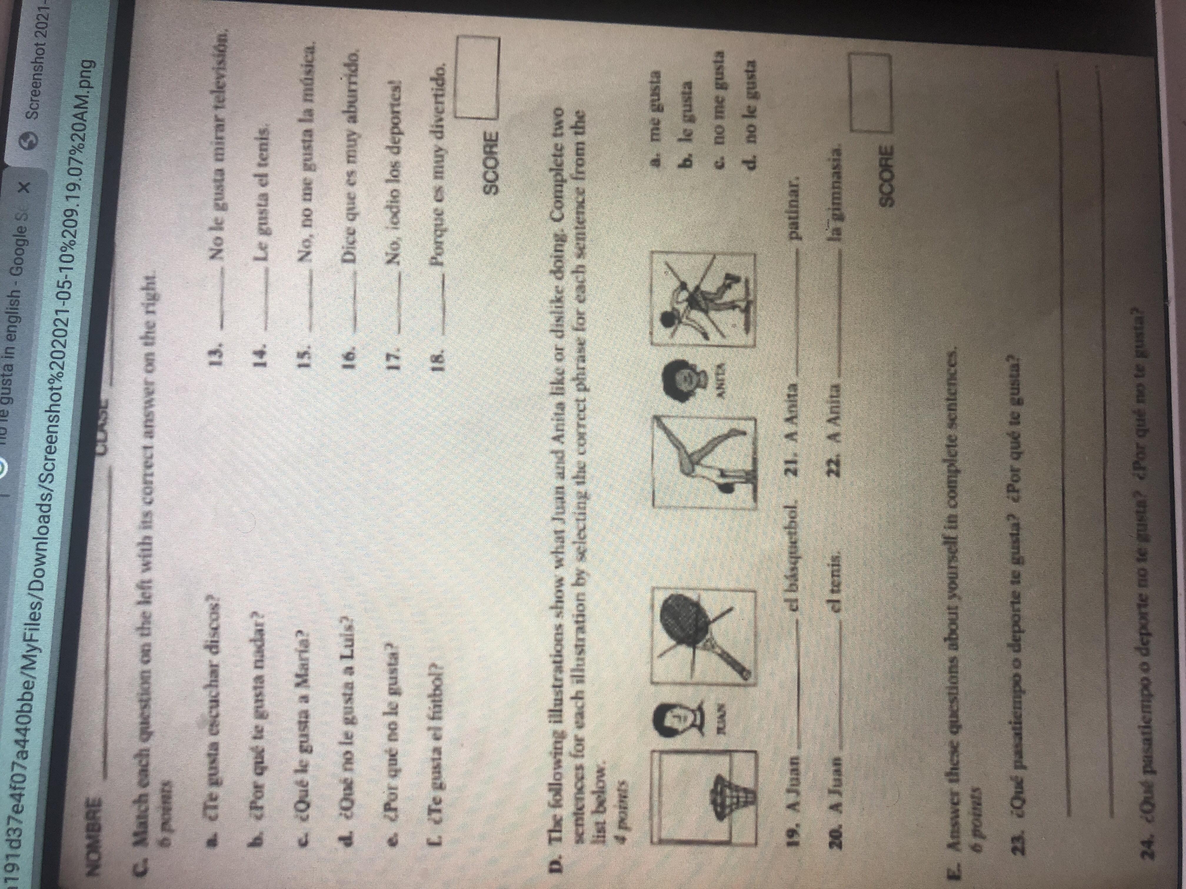 I know u can’t rlly see it that well but it’s a Spanish test and I don’t know Spanish at all so I need help badly!!! Pls help I’
