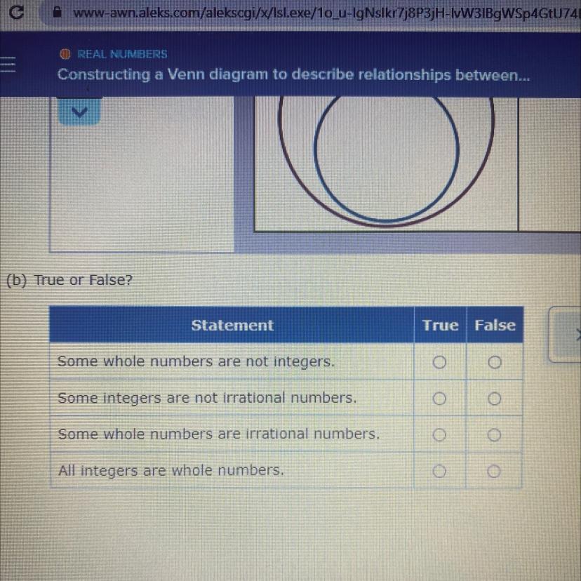 Integers are whole numbers, therefore they are not irrational, <u>True</u>