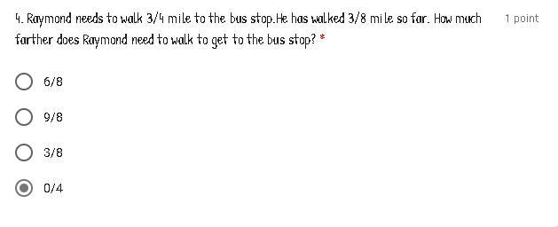 Raymond needs to walk 3/4 mile to the bus stop .He has walked 3/8 mile so far. How much farther does Raymond need to walk to get