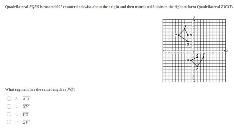 Since the figure is rotated and translated its shape/size doesn't change. If you correspond each of the sides to the other figure then PQ and ZW are the same.